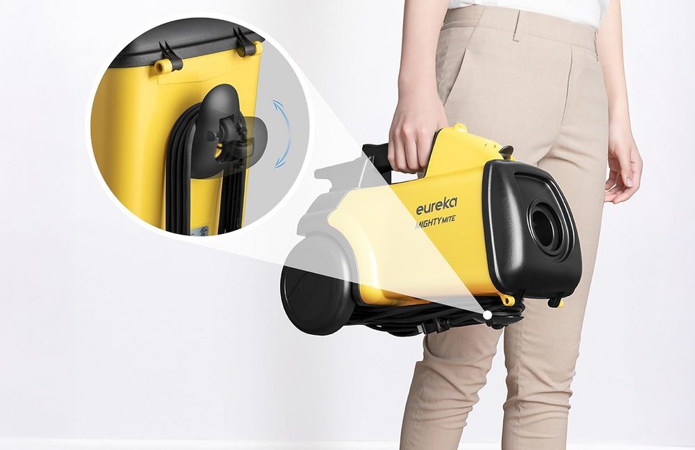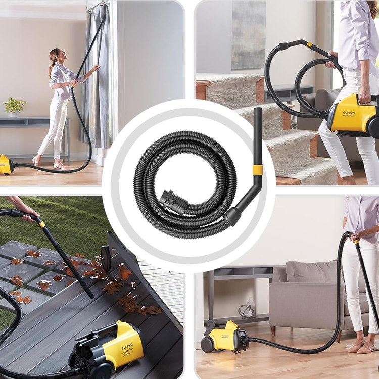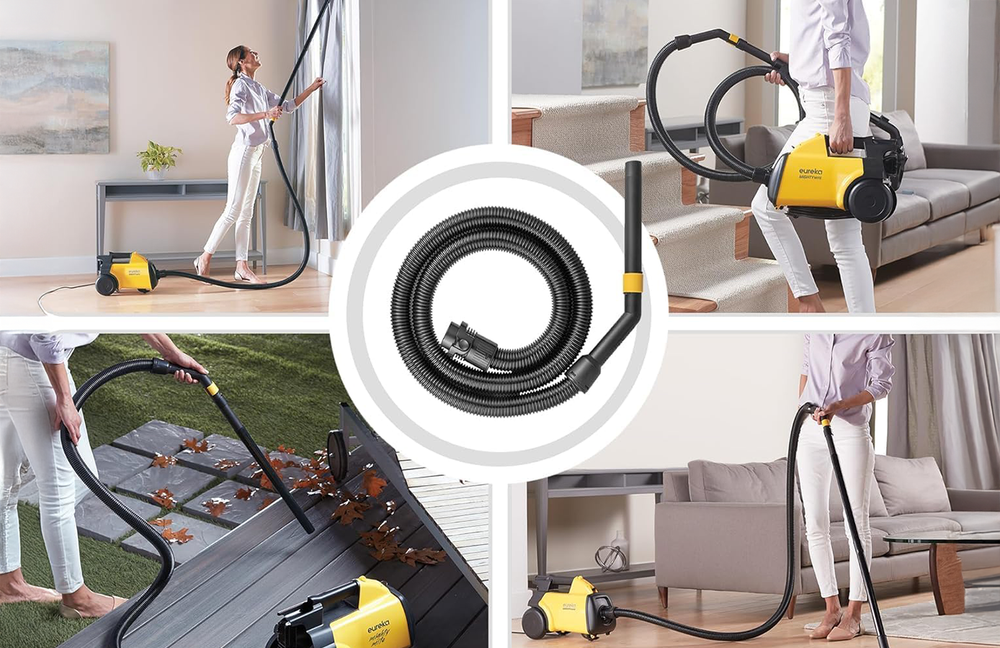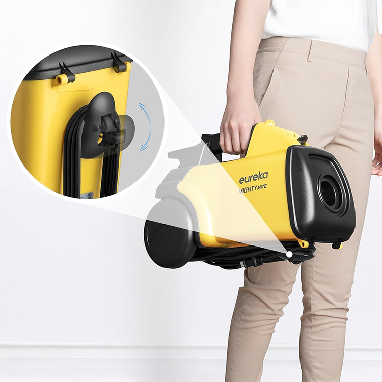 The Eureka 3670G Mighty Mite Bagged Canister Vacuum delivers powerful cleaning in a compact, easy-to-use design. With 12 amps of suction power, it weighs just 8.6 lbs., making it effortless to move from room to room. Its 11-foot reach allows you to clean above-floor surfaces and hard-to-reach corners with ease. Ideal for deep cleaning carpets, hardwood floors, and area rugs, its triple filtration bag system traps dust and allergens for cleaner air. The convenient blower port is perfect for clearing leaves and debris outdoors. Plus, with onboard storage for tools like the crevice tool and 2-in-1 upholstery/dusting brush, the Mighty Mite offers outstanding versatility and performance for a thorough clean throughout your home.