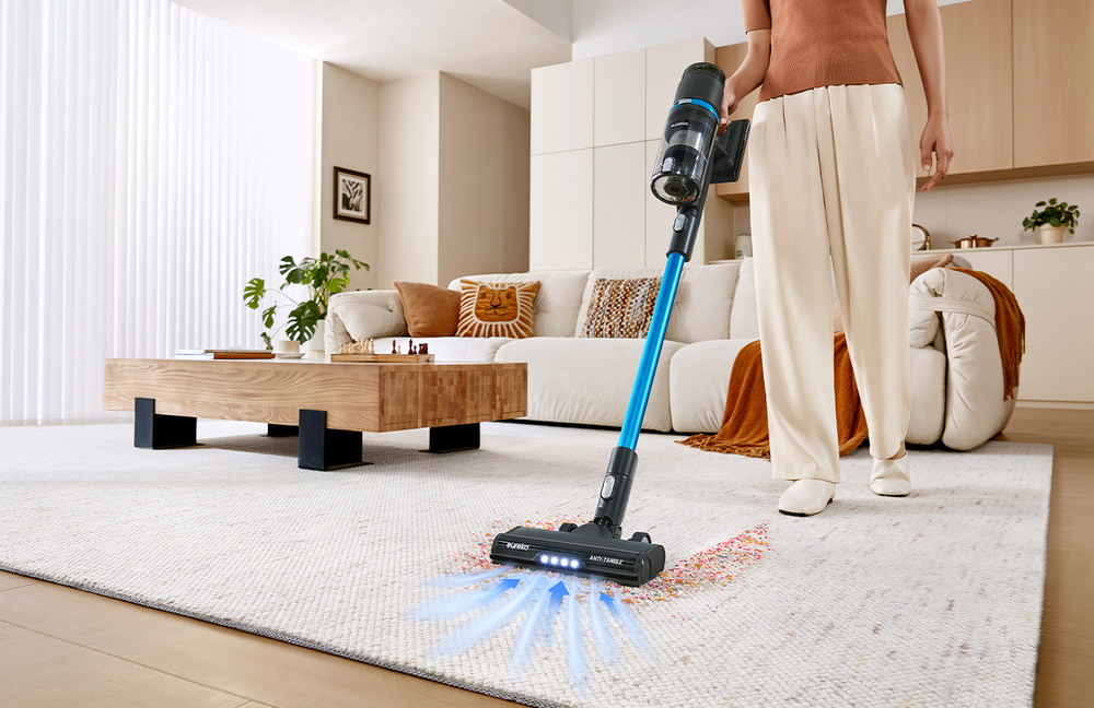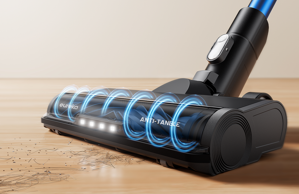 Upgrade your cleaning routine with the Eureka NEC450BLC ReactiSense 450 Cordless Stick Vacuum, engineered for powerful performance across all floor types, from hardwood and carpet to tile. With its Anti-Tangle Brushroll, it prevents hair from getting caught, making it the perfect solution for pet owners. Effortlessly glide across surfaces, tackling dirt, dust, and pet hair with ease while enjoying a smoother, more efficient cleaning experience. Say goodbye to interruptions and tangled brushes, and hello to spotless, beautifully clean floors with minimal effort.